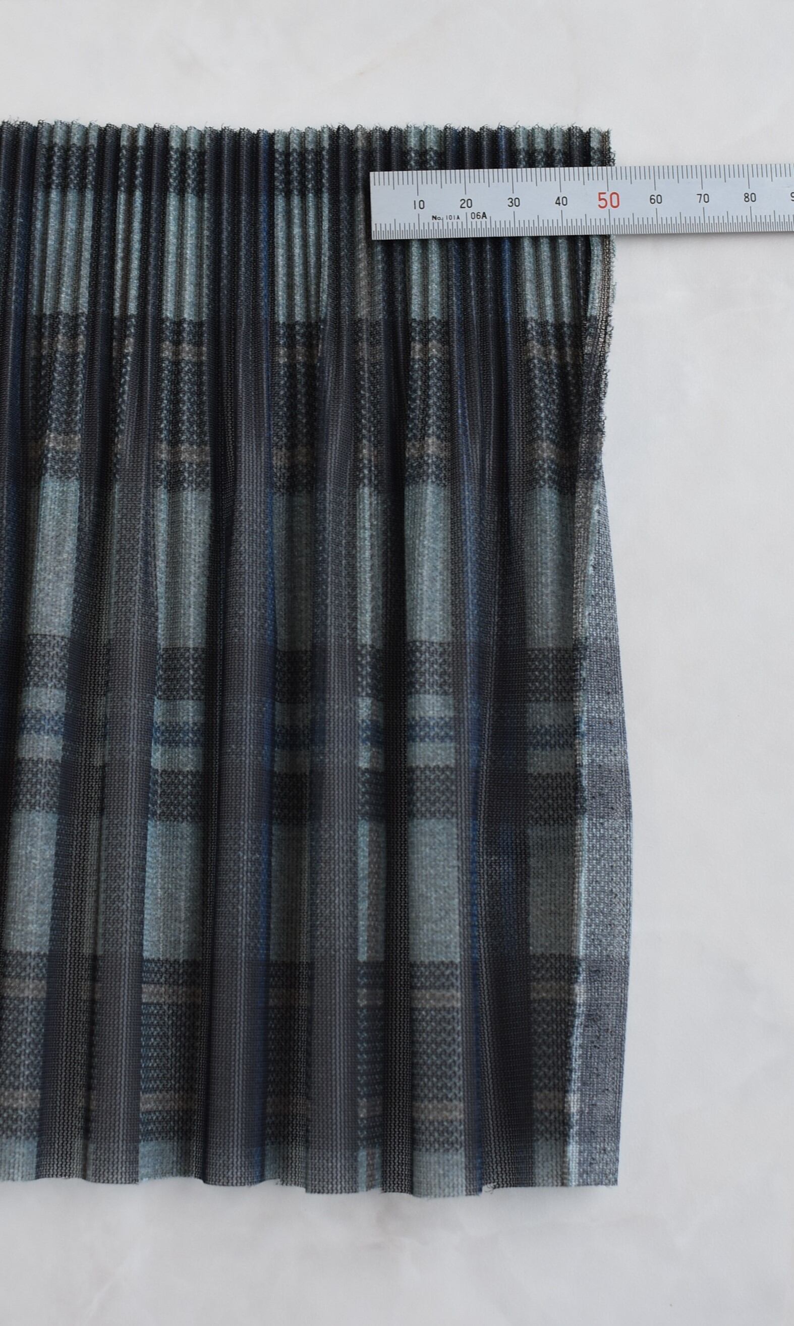 落ち着いたブルー系タータンチェックの生地に少しクリスタルプリーツを掛けてドレープ多めに仕上がってます♡