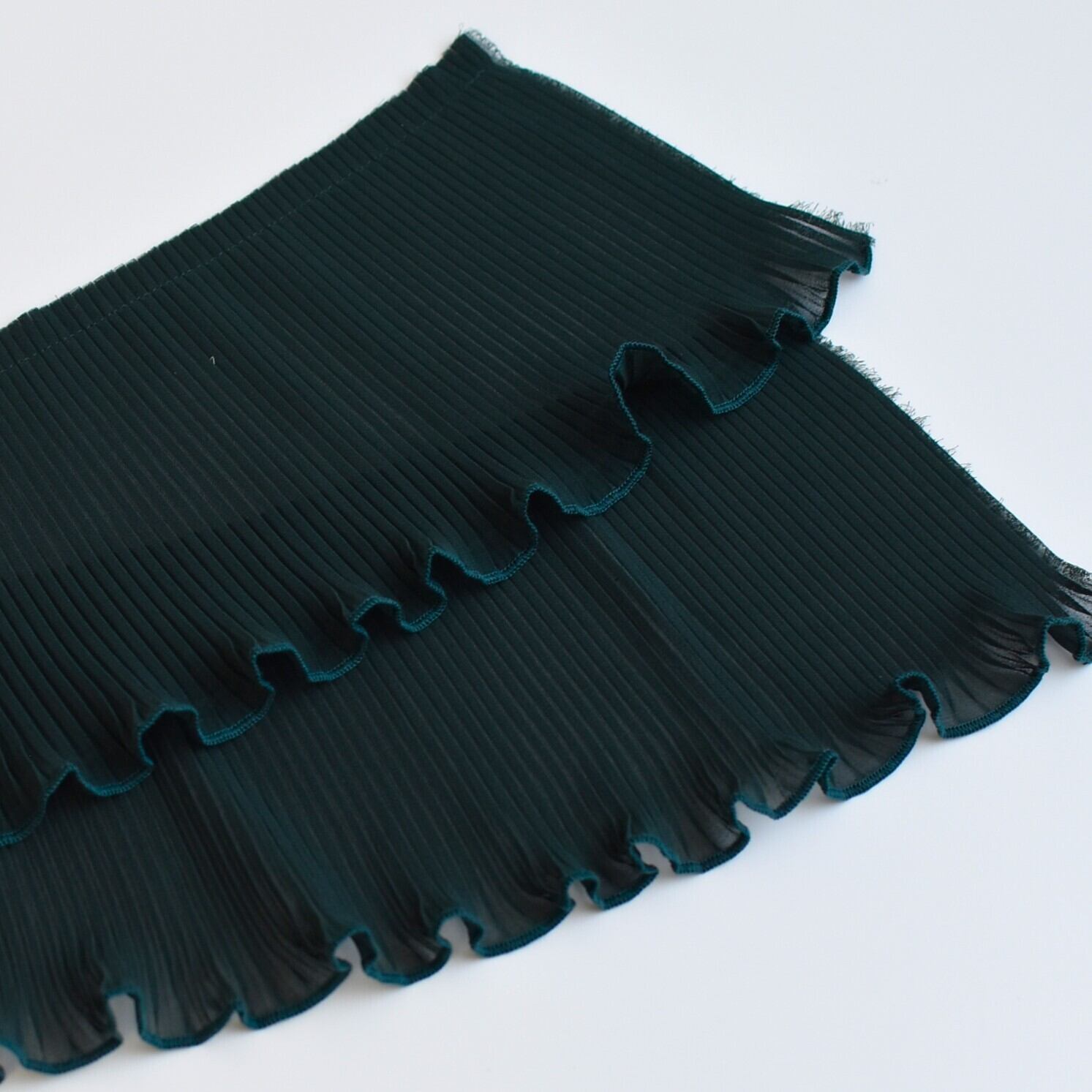 とても柔らかいシフォン生地に細かいサイドプリーツをかけています
