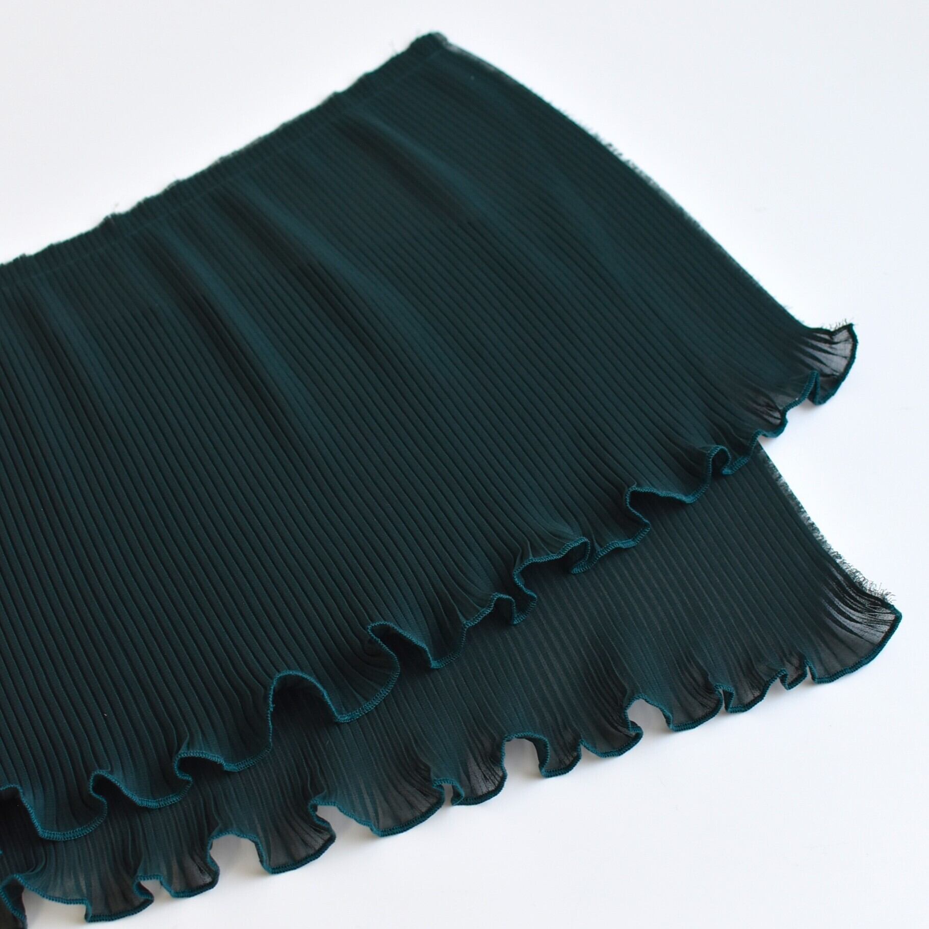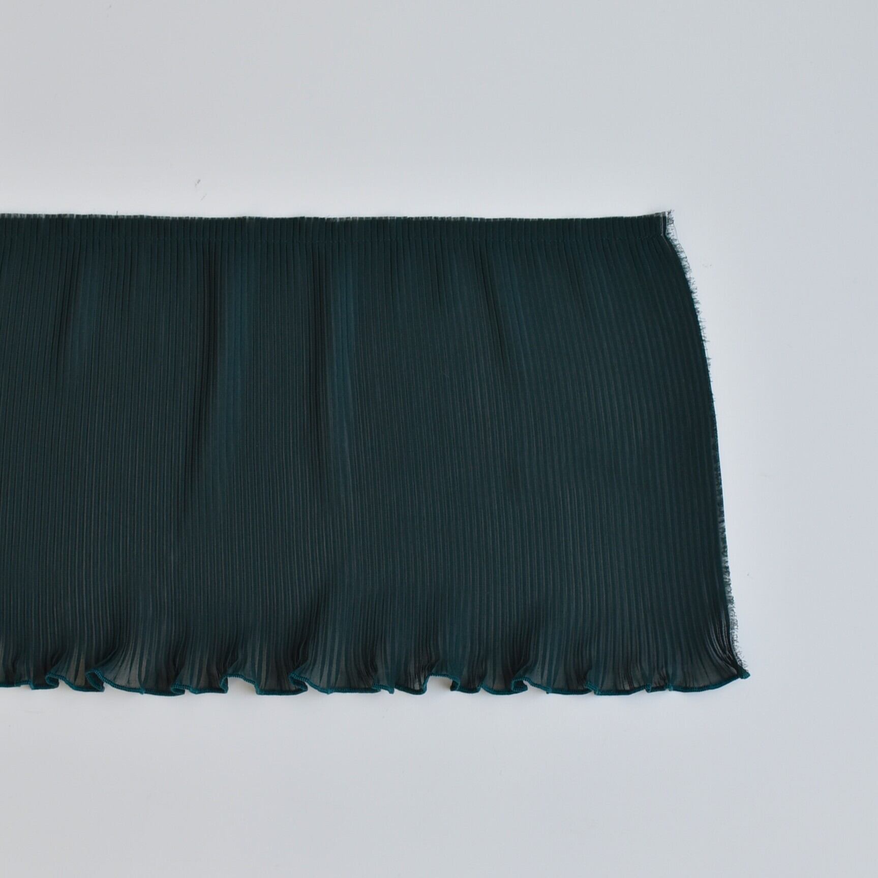 とても柔らかいシフォン生地に細かいサイドプリーツをかけています