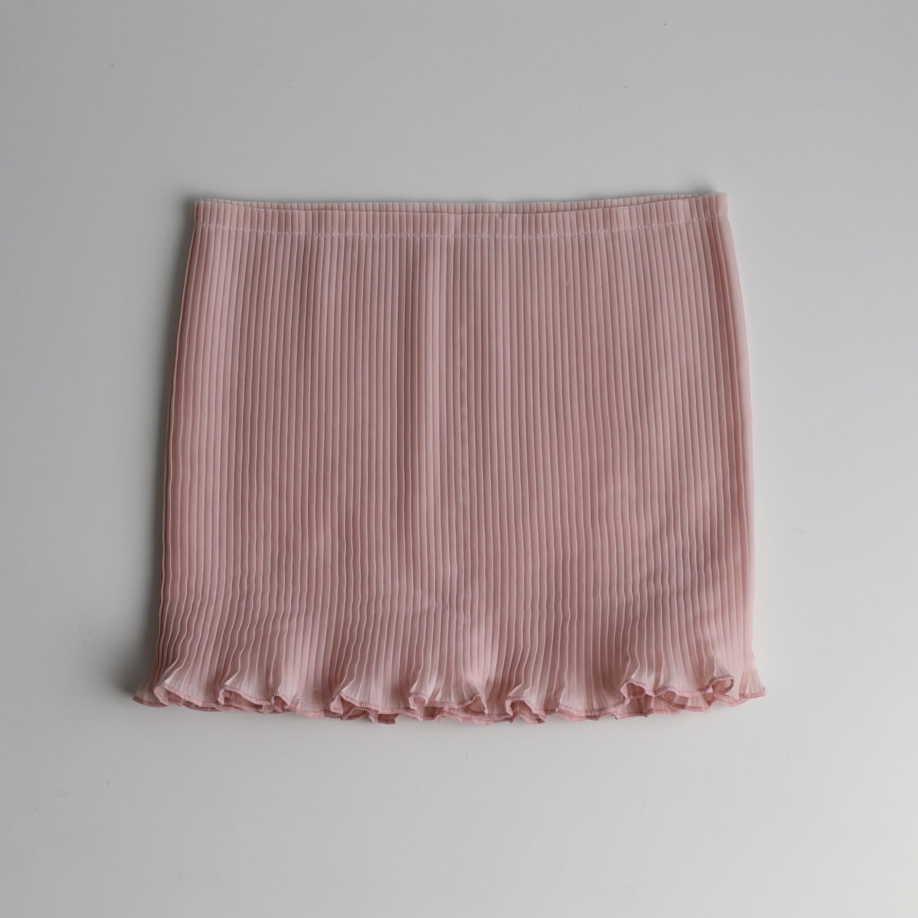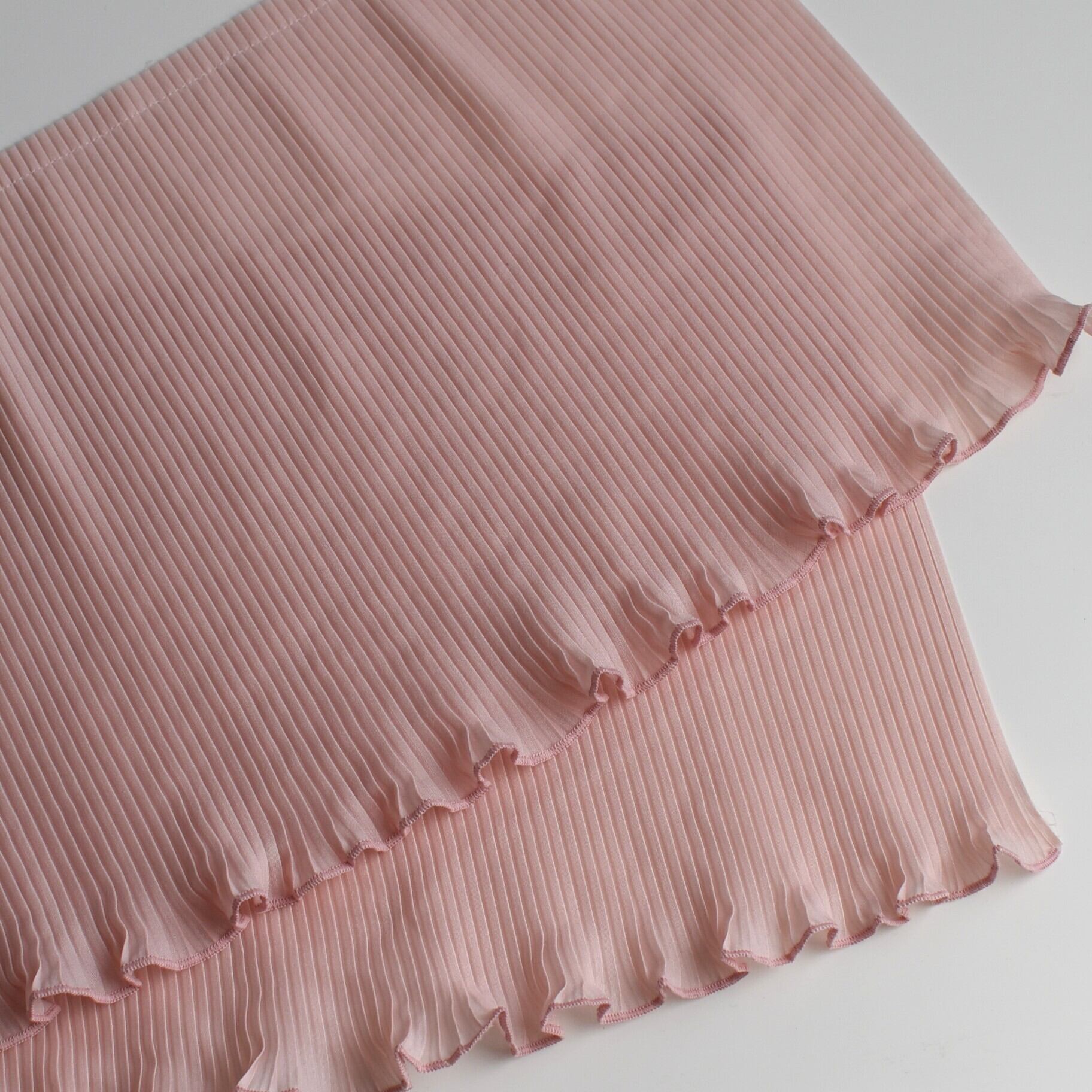 平織りシフォン生地に細かいサイドプリーツをかけています。