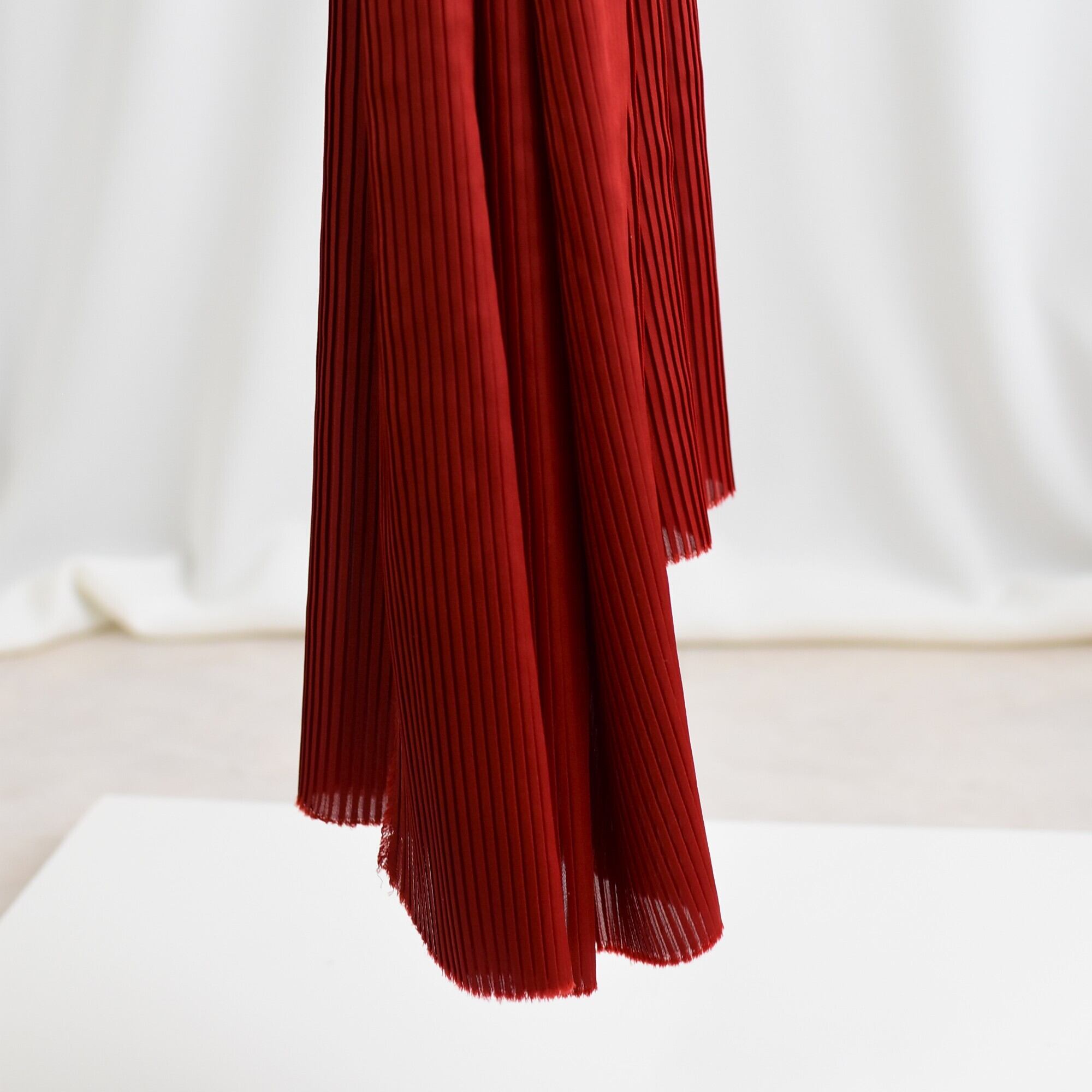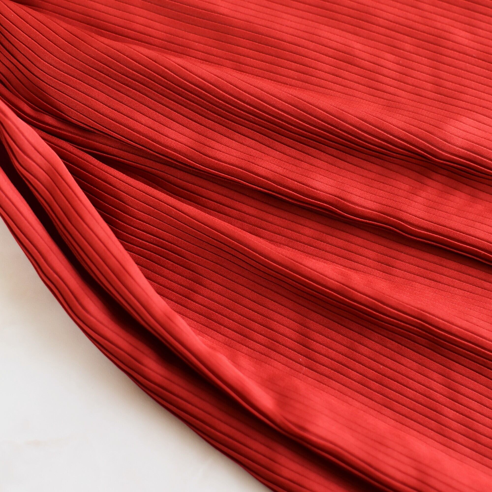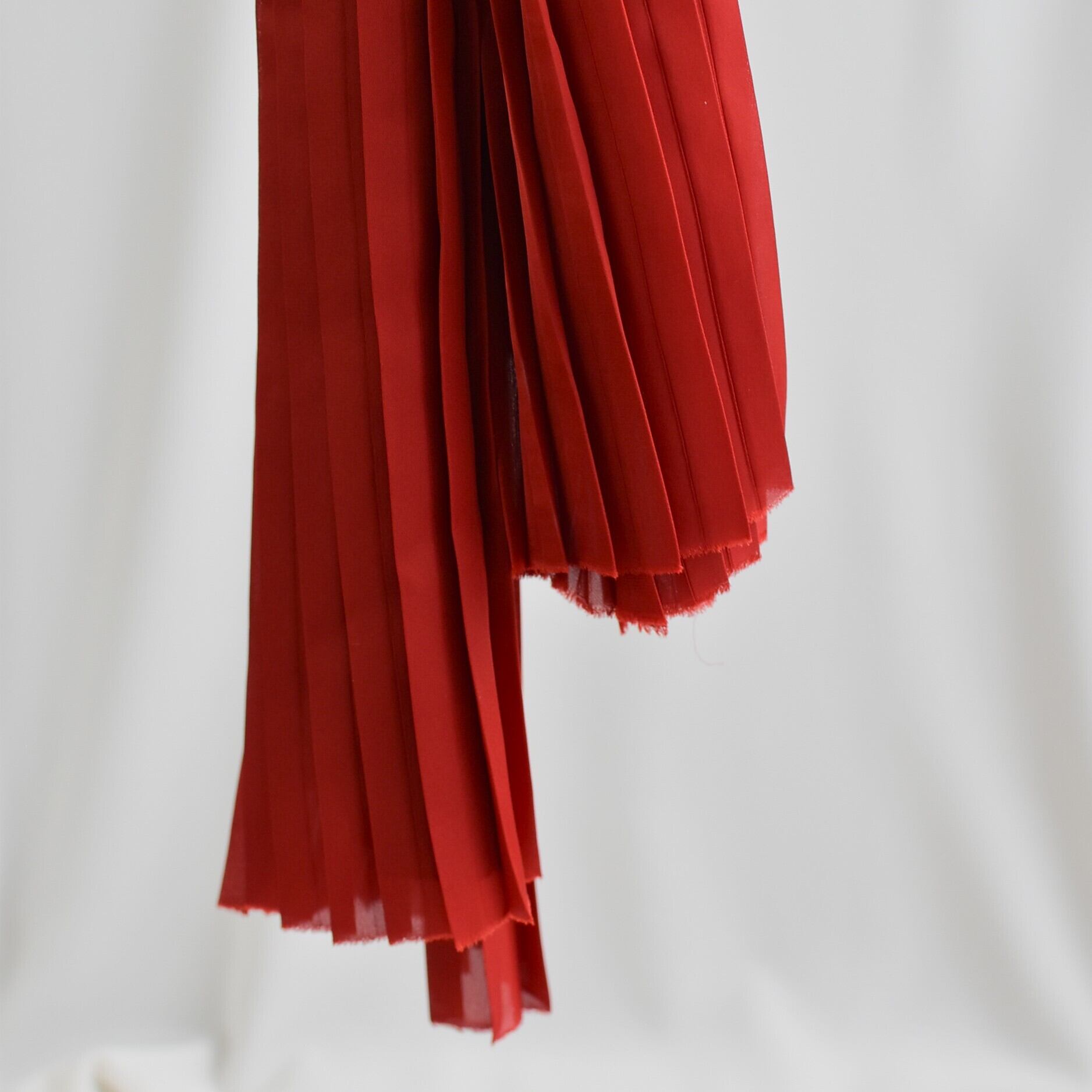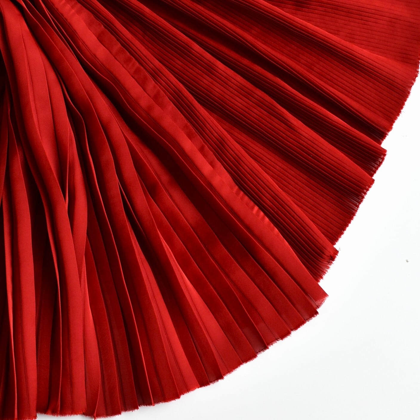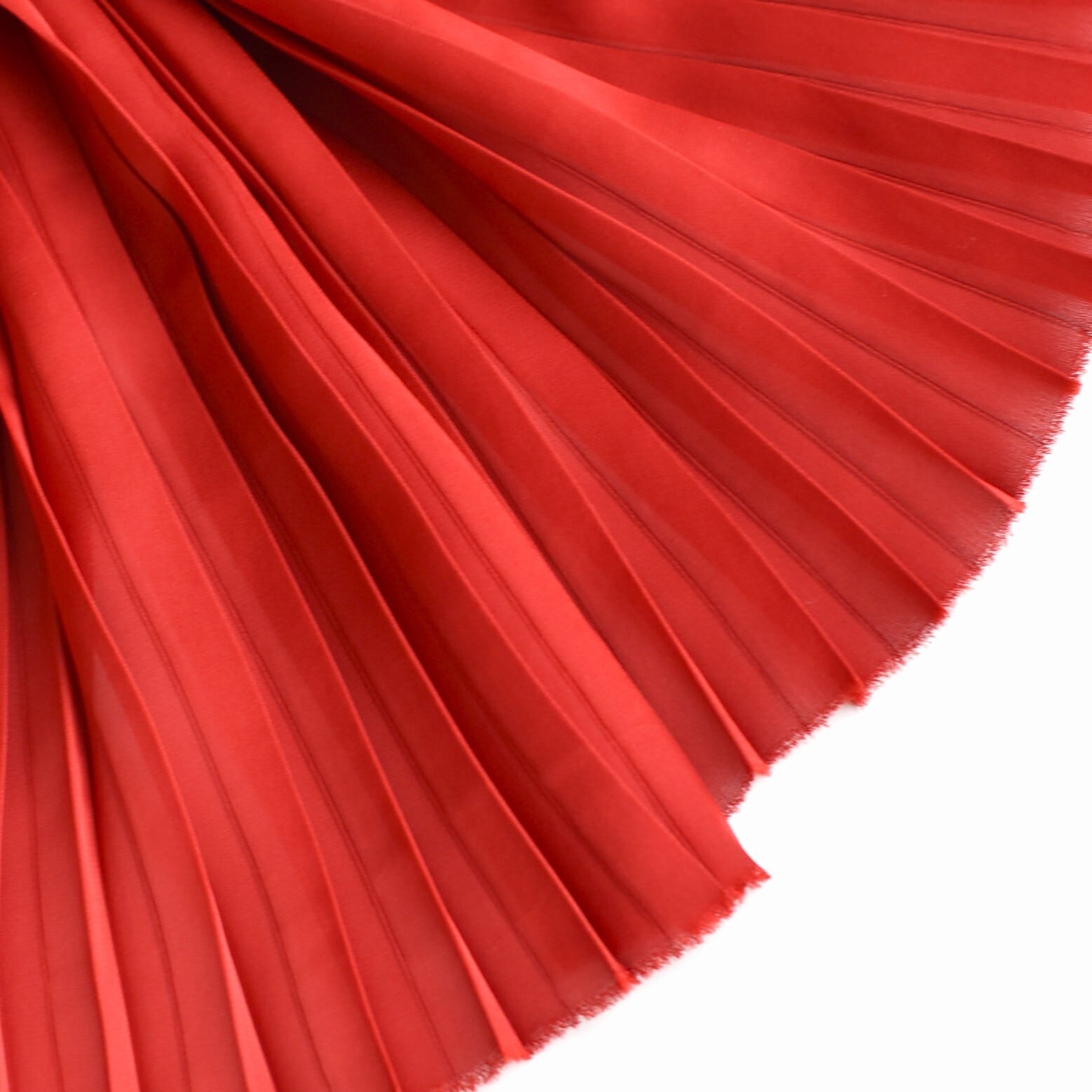 サテンシフォン生地★ディープレッド 選べるサイドプリーツ 2mm/1cm #1127