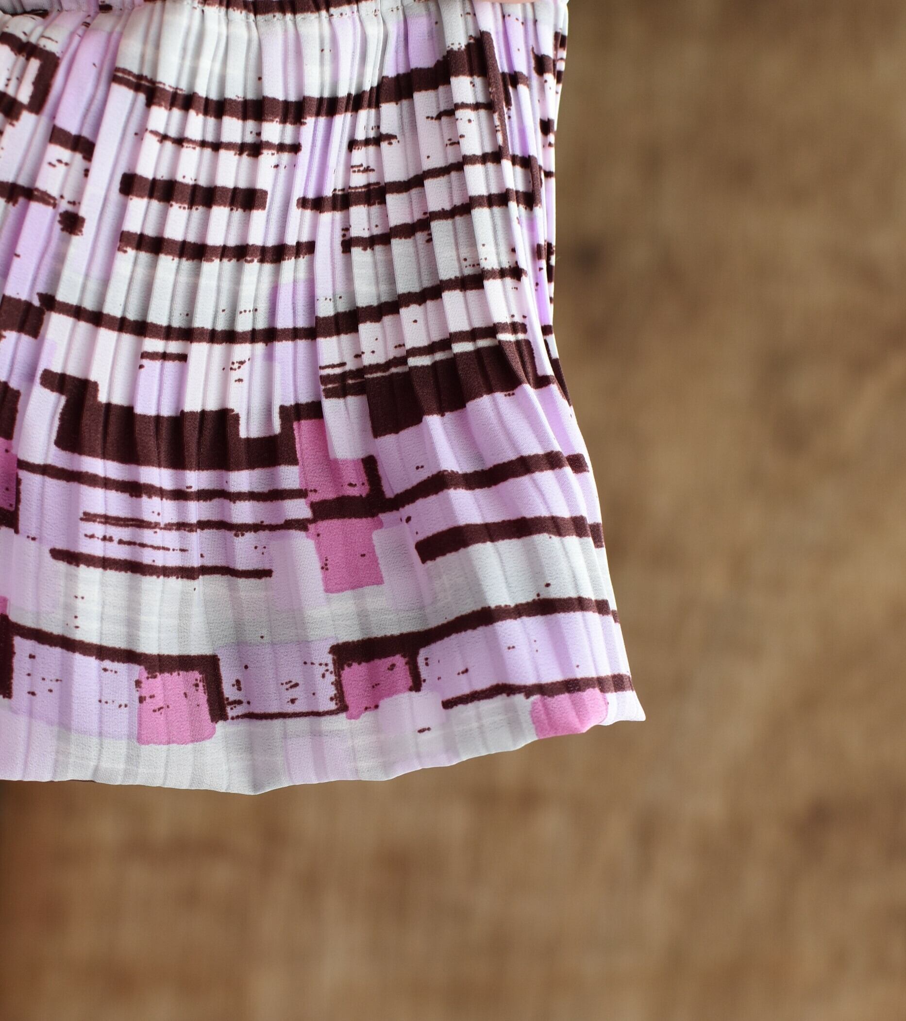 モザイクプリントのシフォン生地にサイドプリーツをかけています♡