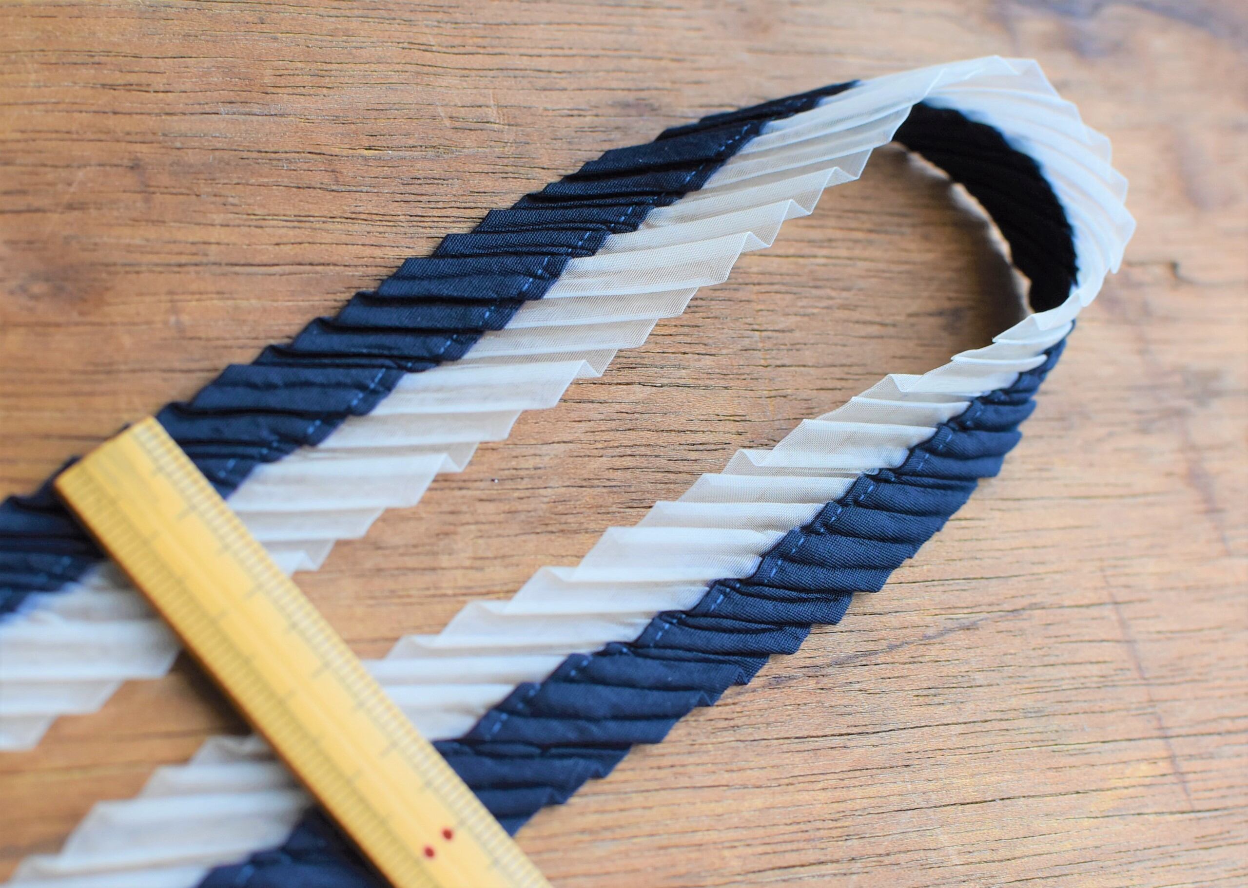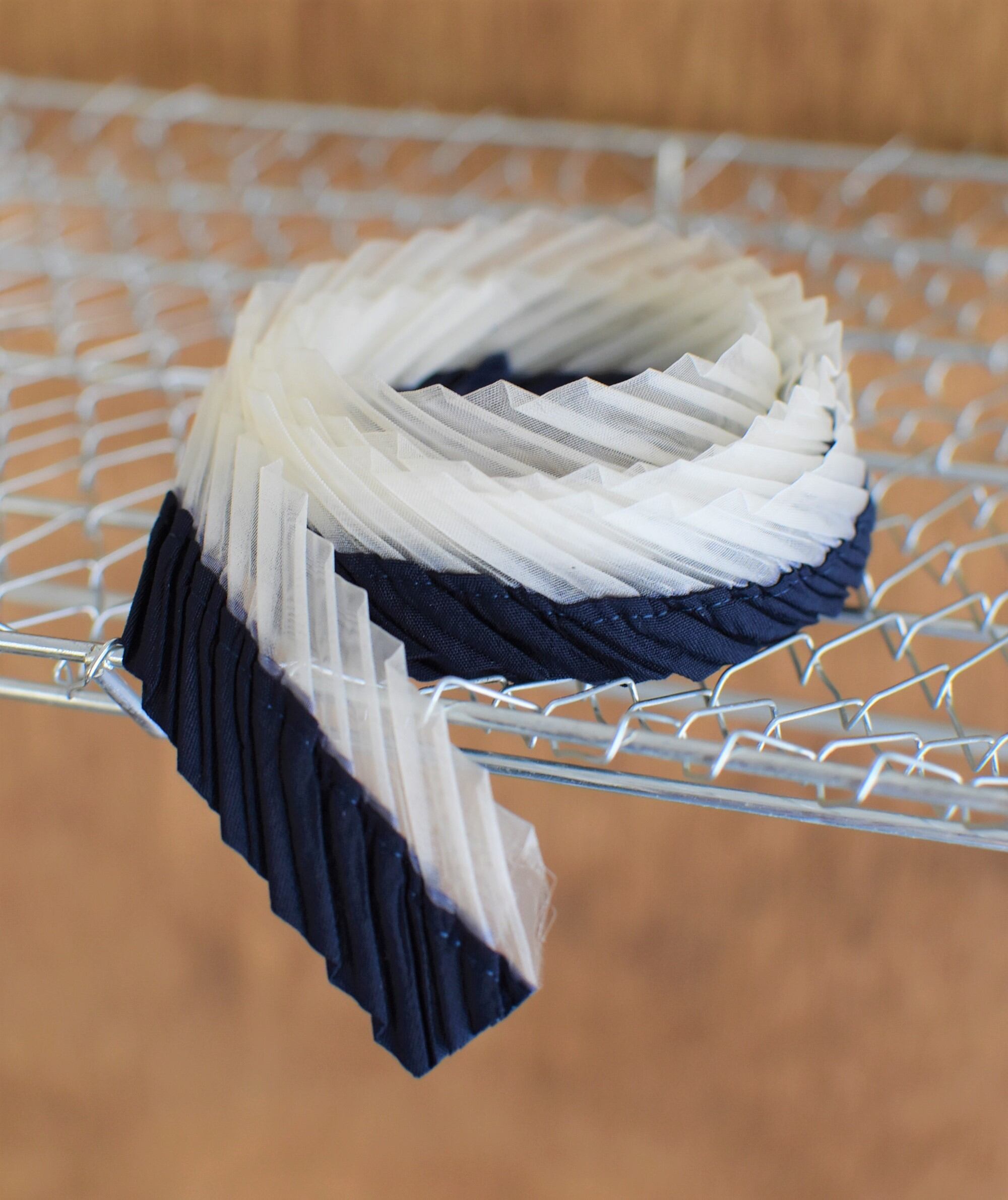 生地を輪にして中心をミシン掛けた後、プリーツ加工しているので両端以外はほつれません。とっても扱いやすいです♪