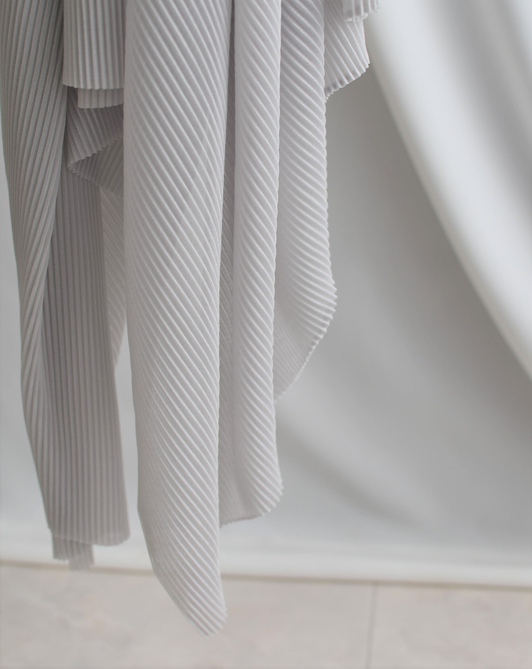 プリーツをかけてもとろみがあり、ドレープとプリーツが合わさることで面白い表情を見せてくれます。