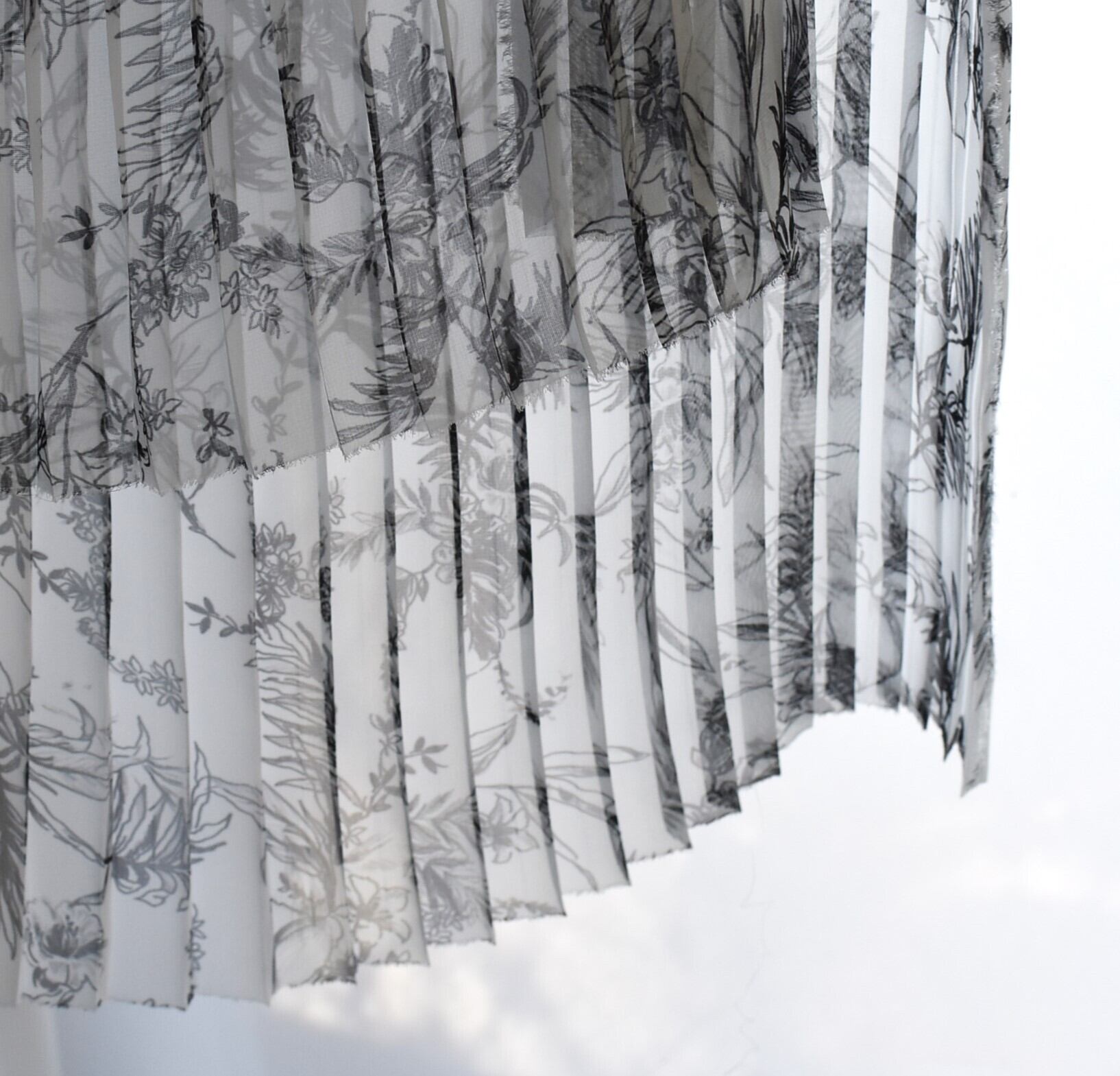 オーガンジーフラワープリント☆サイドプリーツ 1cm #4057#4058
