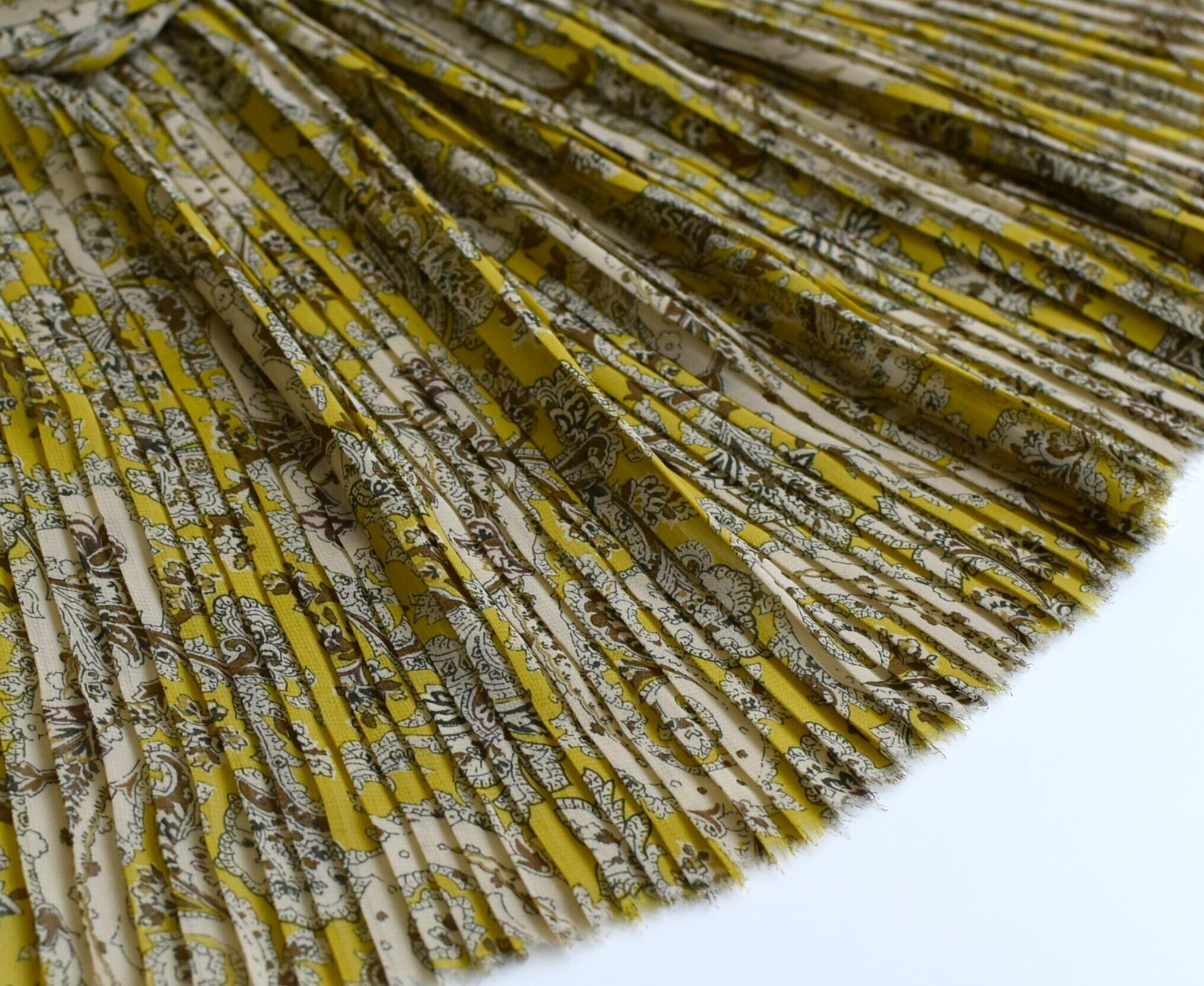 シフォン生地の質感とプリント、さらにプリーツ加工を施すことによってエレガントな生地に仕上がってます。